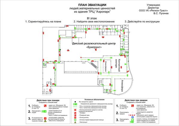 - на 3 этаже – 3 эвакуационных выхода (детский развлекательный центр, «Атмосфера»).
